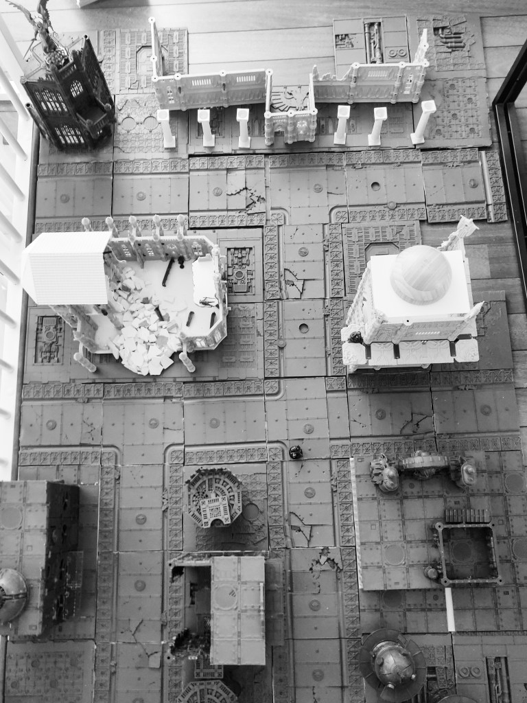As such, I jumped on the idea and did the same, sawing up my imperial sector. Not a fantastic way to spend a bunch of hours, but rewarding when it was finished and I could try out some different layouts. The big aquila and saint pieces don’t fit in any variation of 8″, so those are not cut yet. I am planning to use them to build some big risers.