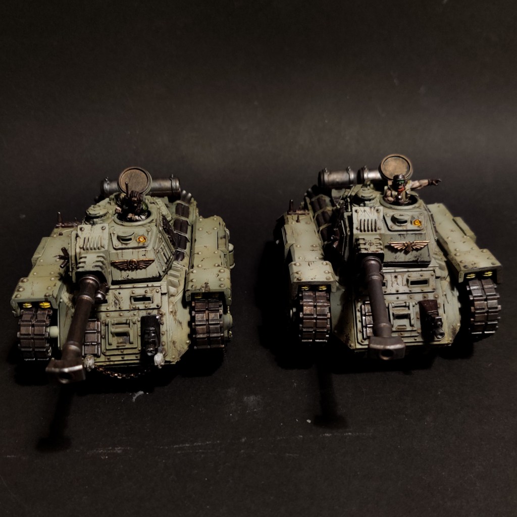 Having backed the Rampart terrain Kickstarter, I found myself sitting on two tanks. I did not like the design, and considered just selling them, but decided in the end to paint them up. And I am really glad I did. With some small modifications and a grungy paint job, they turned out very well, fitting into my PDF / renegade force with the non-standard, but still 40k look and feel. I magnetized the markings and commanders to allow the tanks to easily swap sides.