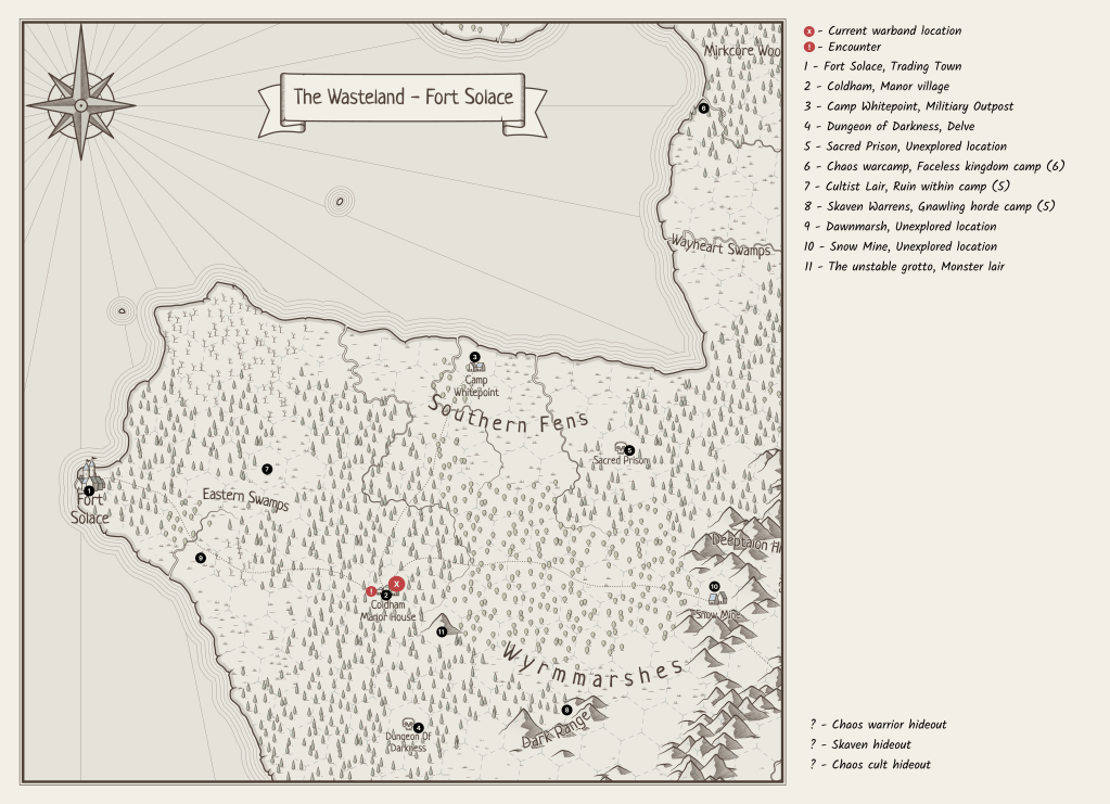 2: Patrol and secure the immediate area around Coldham manor for the baron (D6+2 Gold)