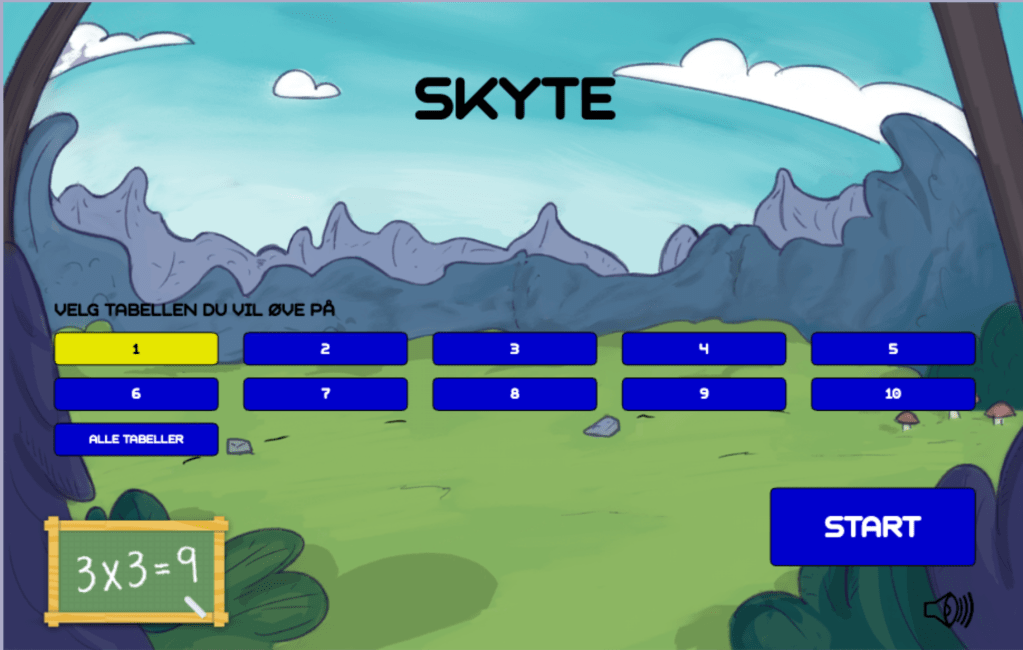 Skyt på mål. Her kan du øve på gangetabellen og skyte på riktig svar